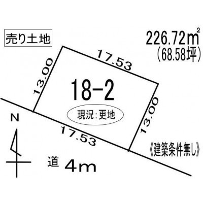 現況更地の土地です! 土地面積約128坪あり、新築用土地としていかがでしょうかこちらの物件は、広々とした約128坪の更地で、理想的な土地をお探しの方に最適です。周辺環境に恵まれ、最寄り駅までは徒歩10分と利便性が高い立地です。日々の暮らしに必要な施設も充実しており、コンビニやドラッグストアが近く、ちょっとした買い物にも便利です。さらに、この土地は道道道路に面しており、車でのアクセスも良好です。幅広い用途に活用可能なため、住宅地としての利用はもちろんのこと、事業用地としてもご検討いただけます。静かな住環境を求めるファミリー層や利便性を重視するシニア層にも適しています。平坦な更地のため、建築プランも自由に立てやすく、夢の住まいや店舗、オフィスなど、さまざまなプロジェクトに対応できます。また、周囲は落ち着いた雰囲気で、交通量も適度。お子様がいるご家庭にも安心して暮らせる地域です。まずはお気軽にお問い合わせください。現地見学も可能ですので、実際に周辺環境や土地の広さをご確認いただけます。お気軽にお問合せください♪北西側道道の道路に接道しており、幅員間口10m以上