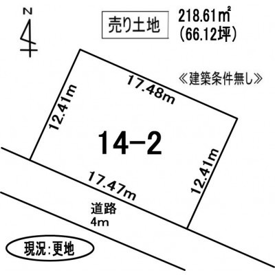 自衛隊幌別駐屯地近くの土地です。南側に建物がないので日当たりがいいです。住宅用地や資材置場などに向いています。建築条件なしです。