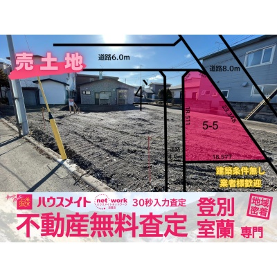 60坪弱の角地。 建築条件無し・小中学校徒歩10分圏内です。 新築用地としていかがでしょうか。 上下水道前面道路有ます。 不動産の事なら室蘭不動産㈱千田(ちだ)まで 0143-43-8838